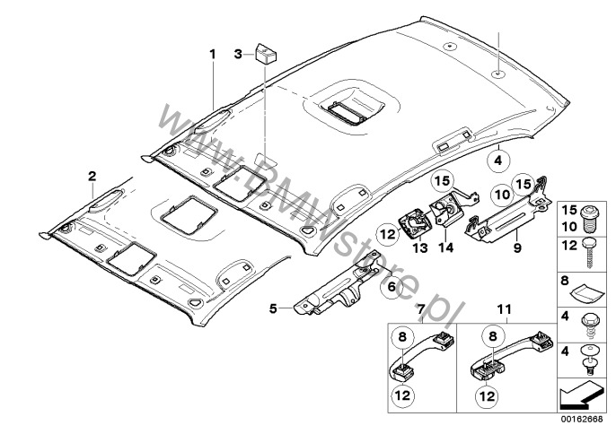 Dla samochodów z Podsufitka antracyt (S775A) = NIE i sonora (A3) = TAK lub beżowy (A5) = TAK lub terra (B8) = TAK lub havanna (BK) = TAK lub beżowy (C2) = TAK Uchwyt tylny lewy 51 16 7 312 183 tylko w połączeniu z |