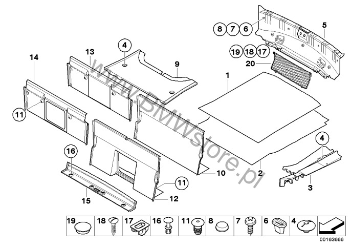 Dla samochodów z Worek na narty (S464A) = TAK Obudowa ścianki działowej bagażnika 51 47 6 970 564 |