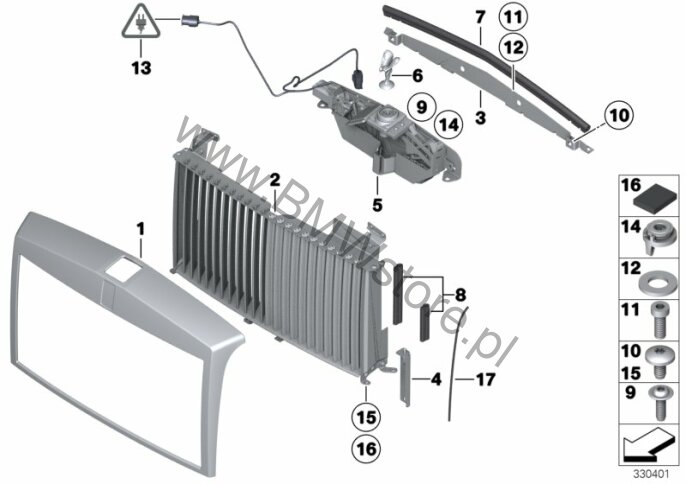 Dla samochodów z Wersja krajowa Japonia (L807A) = NIE Uszczelka mocowania kratki chłodnicy 51 76 7 125 530 |