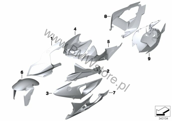 Elem. lakier. WN44 thunder-grey met. dla BMW K46 (S 1000 RR) S 1000 RR 10 (0507,0517) USA
