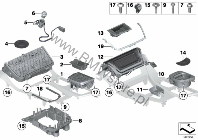 Dla samochodów z Pakiet dla palących (S441A) = NIE Popielniczka kons. środk., środkowa 51 16 9 206 347 |