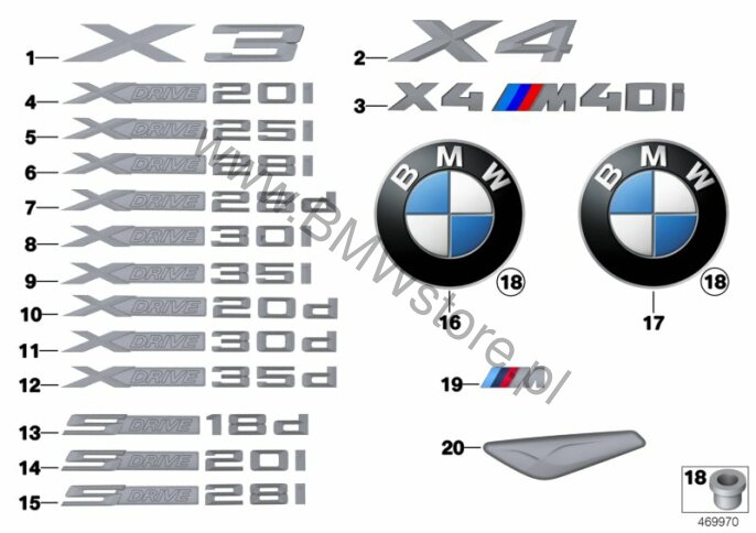 Emblematy / Ciągi napisów dla BMW X3 F25 X3 20dX N47N SAV ECE