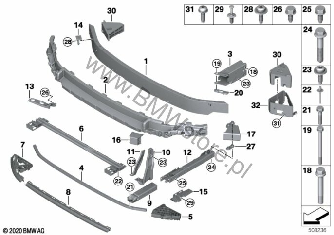Wspornik przedni dla Mini F56 BEV Cooper SE 3-drzwiowy ECE