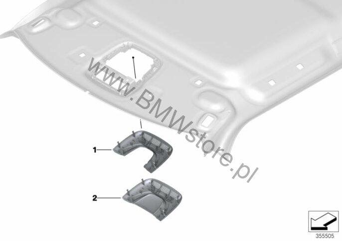 Dla samochodów z System Isofix (S470A) = TAK i Inteligentne połączenie ratunkowe (S6ACA) = NIE i Teleservices (S6AEA) = TAK i Ustawowy numer awaryjny (S6AFA) = TAK Osłona centrum funkcyjnego dachu, czarna 61 31 9 291 845 |