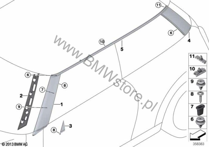 Uchwyt listwy ozdobnej dachu, tylny