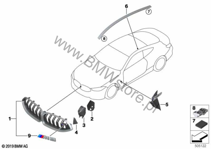 Pakiet wyposaż.zewn.M, karbon (071C) = TAK M Shadow Line o rozszerzonym zakresie (07M9) = TAK 51 13 8 077 669 |