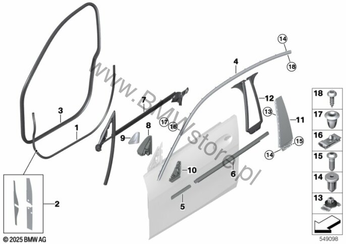 Osłony i uszczelki drzwi przednich dla BMW 2' F44 Gran Coupé 218d ECE