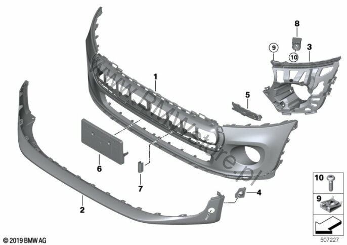 Park Distance Control (PDC) (0508) = NIE Obudowa zderzaka przedniego dolna 51 11 7 499 523 |
