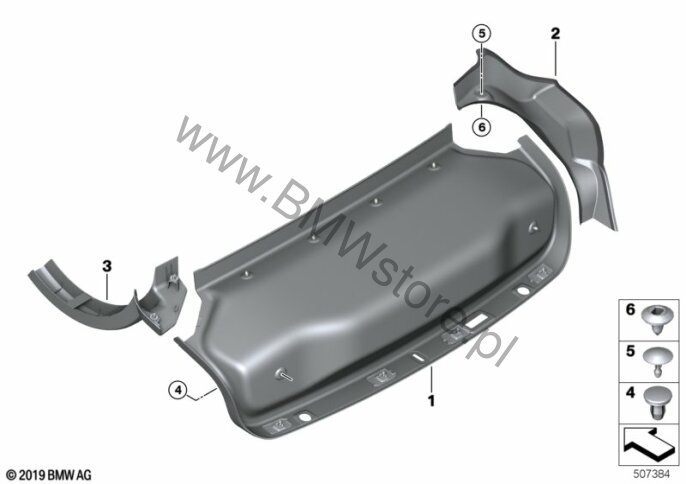 Obudowa zawiasu pokrywy bagażnika, lewa