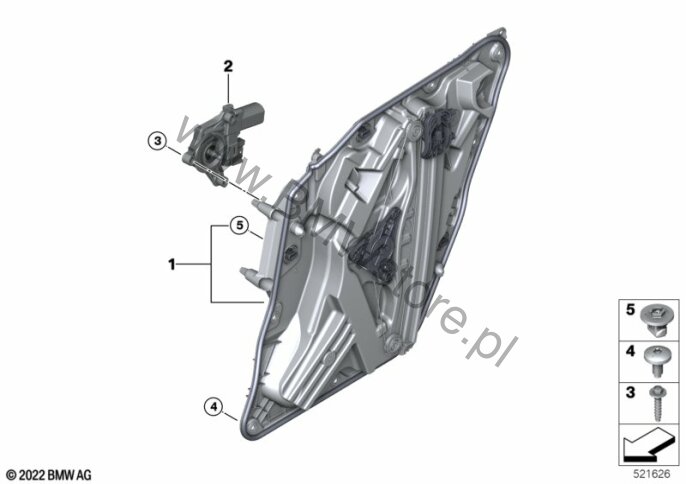 Mechanizm szyby drzwi tylnych dla BMW 2' U06 Active Tourer 225eX ECE