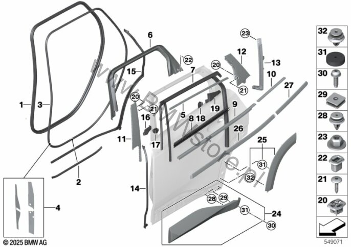 Uszczeln.spoin słupek B tylne drzwi pr.