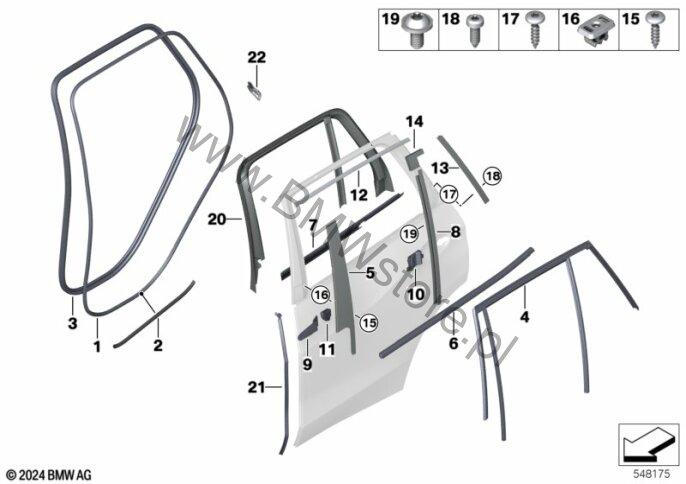 Osłona ramy szyby sł. B drzwi tyl. pr.