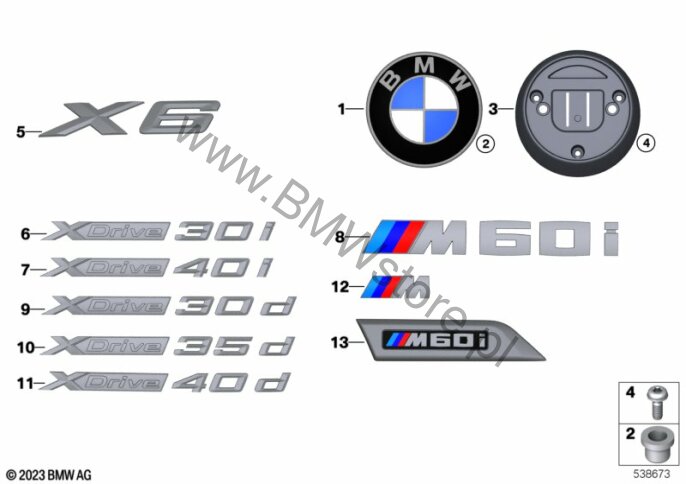 Emblematy / Ciągi napisów dla BMW X6 G06 LCI X6 30dX SAC ECE
