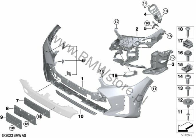 Pakiet areodynamiczny M (0715) = TAK Sterowanie mocowania tabl. rej. (0992) = TAK Brak podst. tabl. rejestr. przedniej (0962) = NIE Wersja krajowa Japonia (0807) = TAK 51 11 8 085 681 |