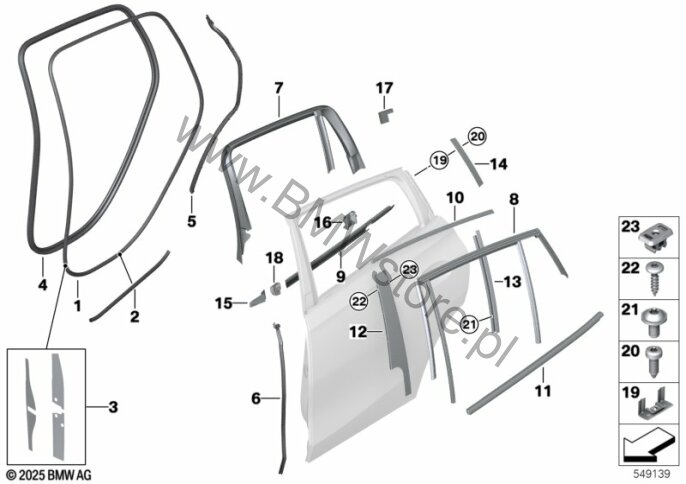 Osłony i uszczelki drzwi tylnych dla BMW X6 G06 LCI X6 30dX SAC ECE