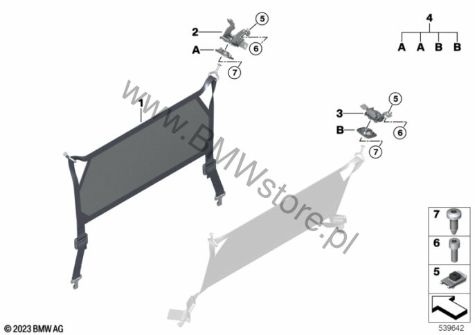 Siatka oddzielająca bagażnika (0413) = TAK Śruba ISA 07 12 9 904 588 |