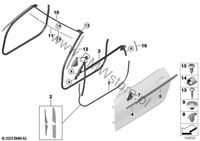 Osłony i uszczelki drzwi przednich dla BMW 4' G23 Convertible LCI 420i Cabrio ECE