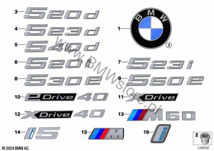 Emblematy / Ciągi napisów dla BMW 5' G61 Touring 520d ECE