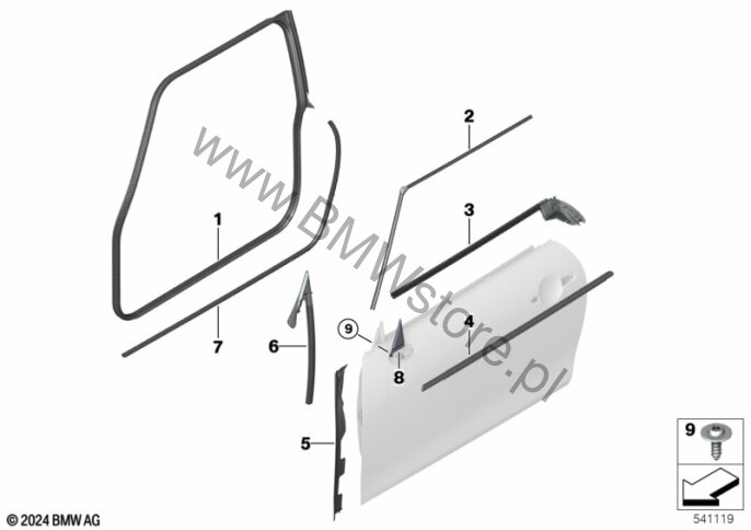 Osłony i uszczelki drzwi przednich dla Mini F66 JCW 3-drzwiowy ECE