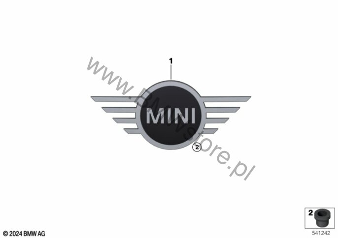 pasuje tylko do tylnej klapy Określone dodatkowe zakresy JCW trim (09T9) = NIE Emblemat 51 14 5 A32 482 |