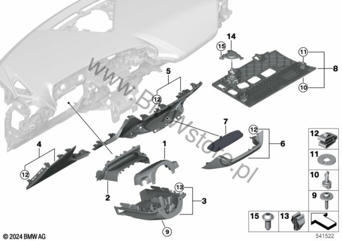 Elementy dod. tablicy przyrządów na dole dla BMW 1' F70 M135 xDrive 5-drzwiowy ECE