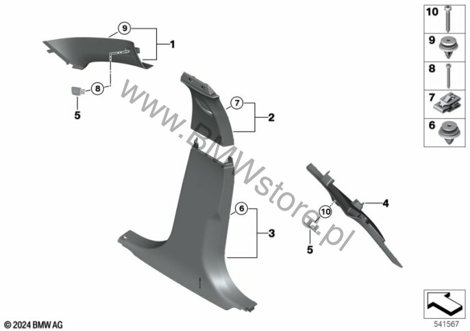 Obudowa słupka A / B / C / D dla BMW 1' F70 M135 xDrive 5-drzwiowy ECE