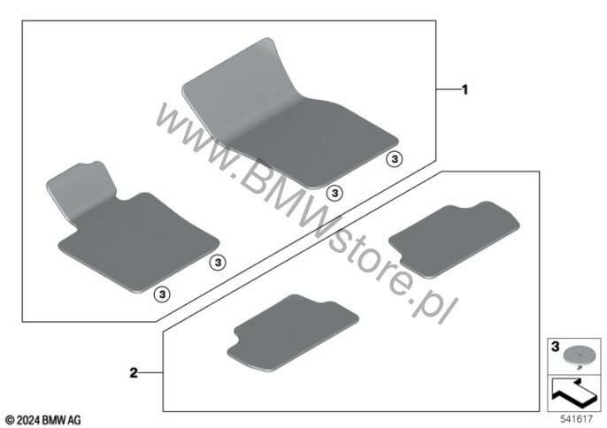 Wersja krajowa Chiny (08AA) = NIE Komplet tylnych dywaników podłogowych 51 47 5 A56 031 |