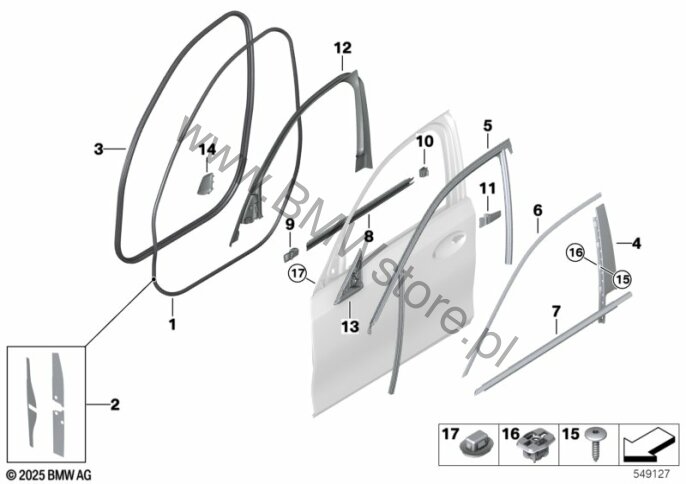 Uszczelka zgarn. wewn. drzwi prz. pr.