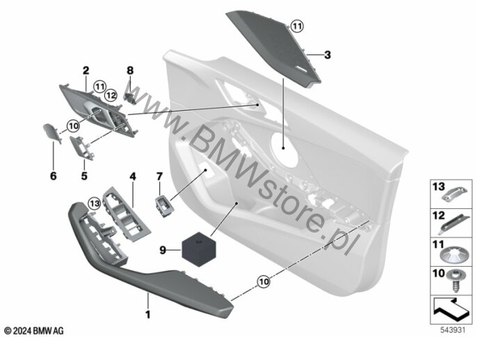 Elementy dod. tapicerki drzwi przednich dla BMW 1' F70 M135 xDrive 5-drzwiowy ECE