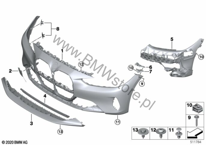 Pakiet areodynamiczny M (0715) = NIE Prowadnica zderzaka prawa górna 51 11 7 450 396 |