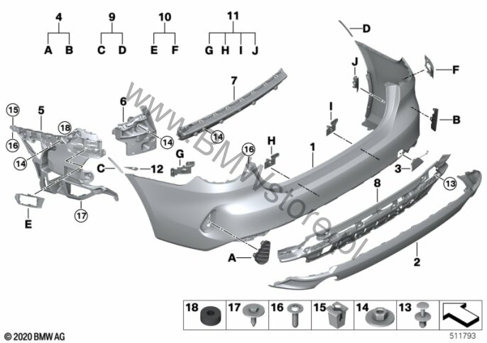 Pakiet areodynamiczny M (0715) = NIE Zestaw kratek na tylny zderzak 51 12 9 854 827 |