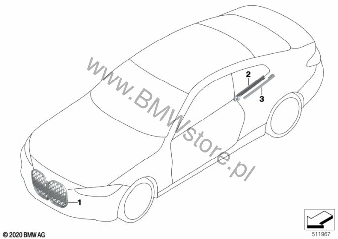 M Shadow Line o rozszerzonym zakresie (07M9) = NIE PAKIET SPORTOWY M PRO (033B) = NIE Aktywna reg. prędkości+funkcja Stop&Go (05DF) = NIE Driving Assistant Professional (05AU) = NIE System wspomagania parkowania Plus (05DN) = TAK Kratka ozdobna przednia 51 11 8 738 155  |