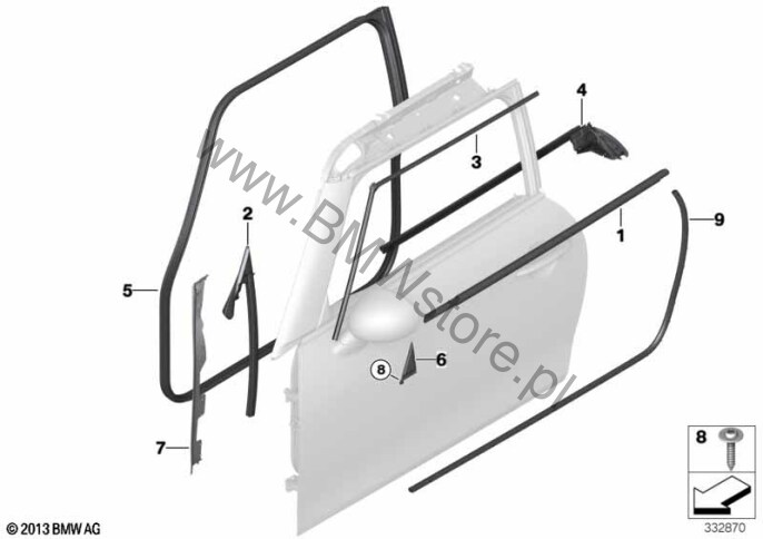 Uszcz.wnęki szyby drzwi wew.przedn.pr.