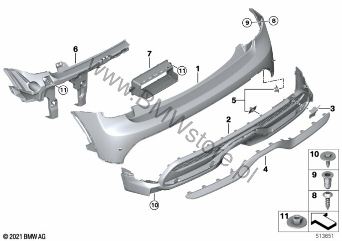 Kpl. elem. montażowych zderzaka tylnego