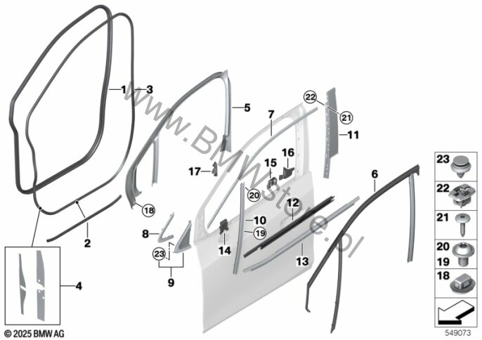 Osłony i uszczelki drzwi przednich dla BMW 2' U06 Active Tourer 225eX ECE