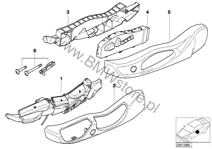 Dla samochodów z Regulacja fotela przedn. elektryczna (S458A) = TAK pasuje tylko do strony pasażera ***** Panel sterowania, prawy 61 30 8 099 074 |