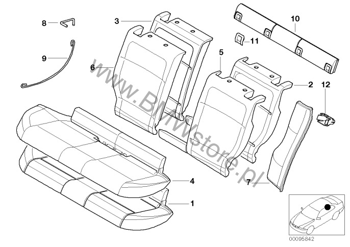 Fot. tyl., tapic. i poszycie, sys. zał. dla BMW 3' E46 318i M43 Touring ECE