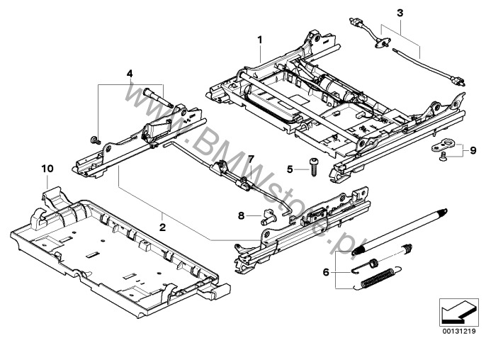 Dla samochodów z Fotel sportowy (S481A) = TAK Szyna fotela zewnętrzna prawa 52 10 7 120 192 |