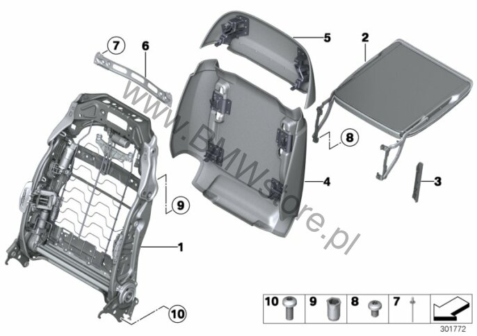 Dla samochodów z Skóra "Dakota" (LC) = TAK lub Skóra Nappa (NA) = TAK Tylna ścianka, fotel komfortowy tylna 52 10 7 319 095 |