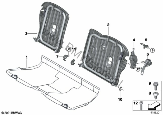 Siedz. tyl., rama siedz. sys. zał. dla Mini F55 LCI Cooper S 5-drzwiowy ECE