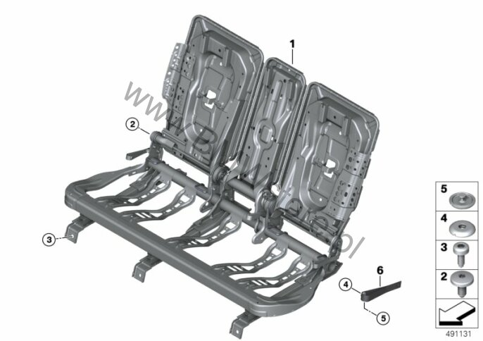 Dla samochodów z Podłokietnik środkowy na kanapie (S497A) = TAK Struktura fotela 52 20 7 436 979 |