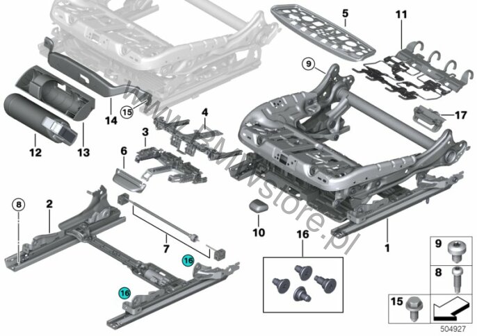 Dla samochodów z Fotel sportowy (S481A) = TAK Podparcie ud z ręczną regulacją Mechanika podparcia ud, górna 52 10 7 424 508 |