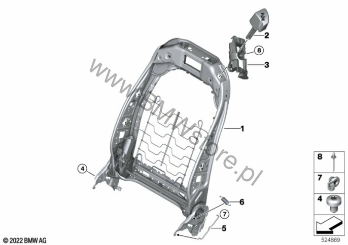 Fotel przedni, rama oparcia dla BMW 3' G20 Saloon LCI 330i Limousine ECE