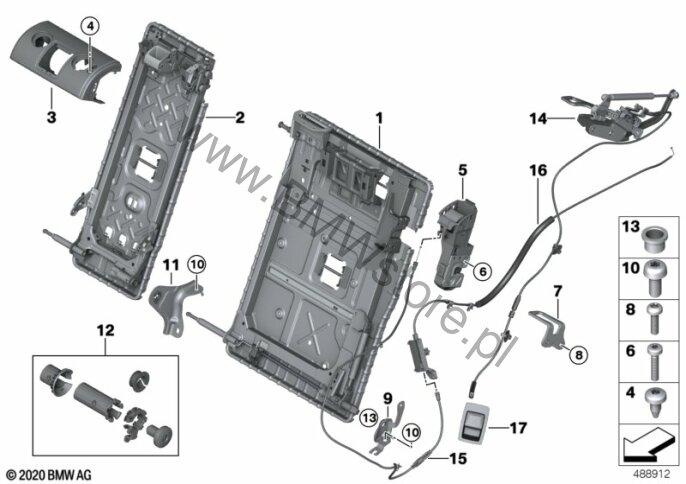 Regulacja oparć fotela elektr. tylna (0461) = NIE 52 20 7 422 639 |
