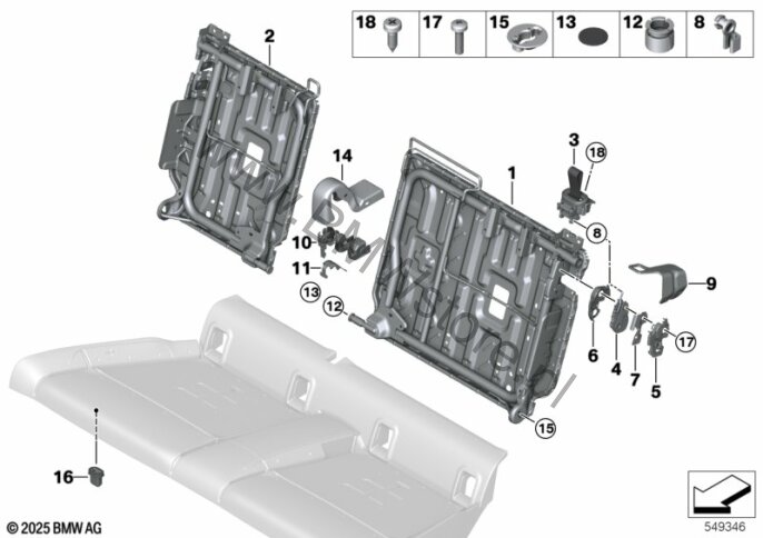 Siedzenia tylne, rama oparcia dla Mini Cooper J01 Cooper E 3-drzwiowy ECE
