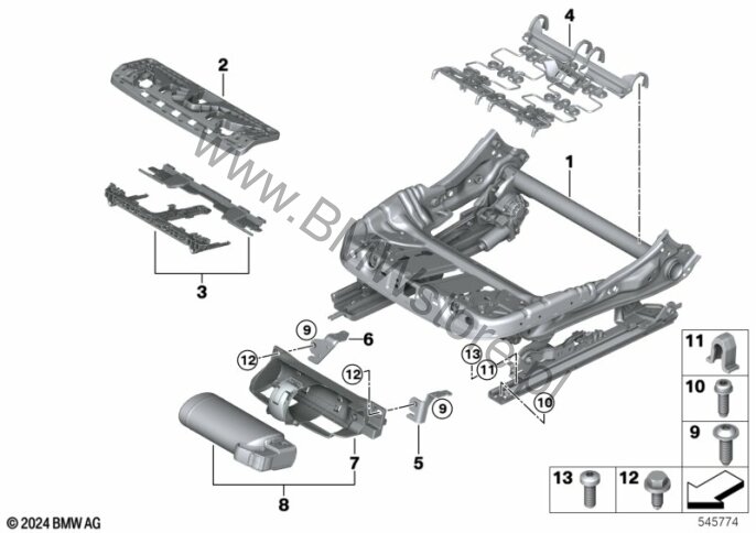 Siedz.przednie, elektryczna rama siedz. dla BMW 5' G61 Touring 520d ECE