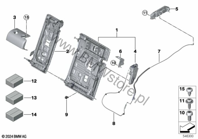 Siedzenie tylne, rama siedziska dla BMW 5' G61 Touring 520d ECE