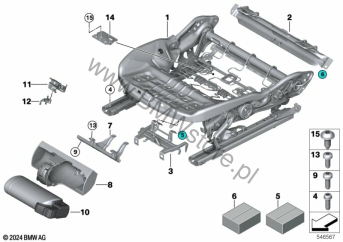 Elektryczna regulacja foteli z pamięcią (0459) = TAK Zestaw drobnych cz.do wspornika sterow. 52 10 9 891 640 |
