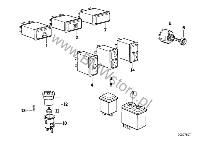 Dla samochodów z Elektryczny siłownik szyby i Dach przesuwno-uchylny Przełącznik podświetlany 61 31 1 377 905 |