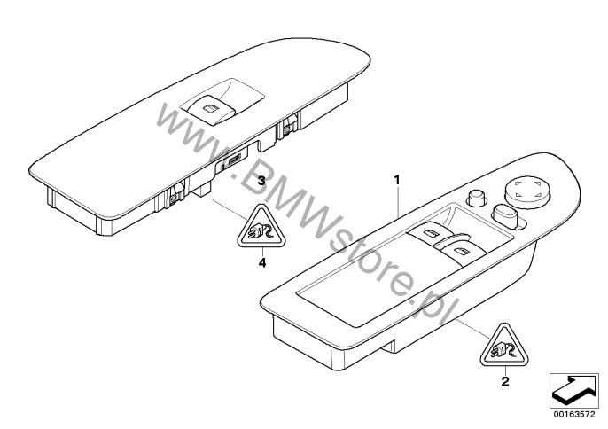 Dla samochodów z Lusterko zewn. z funkcją składania (S313A) = NIE i Lust. wew./zew. z automatyką przyciemn. (S430A) = NIE i Elektryczna regulacja foteli z pamięcią (S459A) = TAK szary 61 31 9 216 525 |